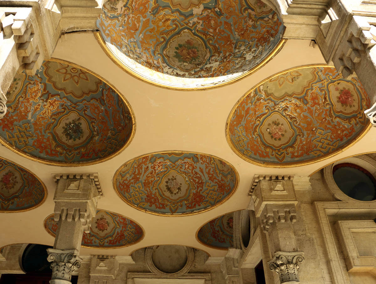 The Mavi (Blue) Room has bright blue stucco lustro columns all the way round. Abdülaziz himself carved one of the chairs in the lovely Inlaid Pearl Room. The Empress Eugenie, who stayed for nearly three months, must have loved it. – Claire Karaz