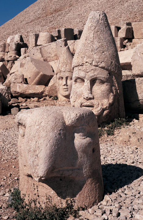 Buy/gift a digital subscription Login to the Digital EditionThe incomparable mountaintop royal tomb dating from the 1st century BC was built for Antiochus I Theos, ruler of the kingdom of Commagene, and his colossul statue was joined by those of both Greek and Persian gods. Min Hogg visited the site for Cornucopia 24: ‘Panting, at the top we find a flat terrace dominated by a man-made tumulus of shale. The terrace is a cascade of carved stone heads, each taller than a man, toppled from a row of huge stone thrones on a higher level…’
