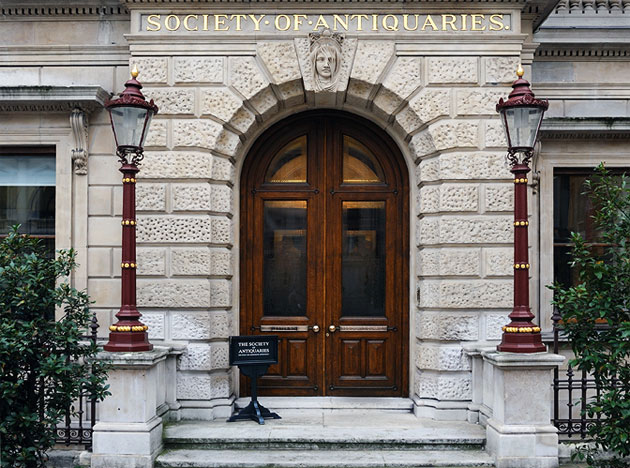 Inside the courtyard of the Royal Academy of Arts, to the right of the main entrance.