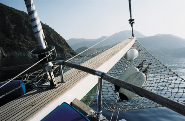 As the sun rises over the old Selçuk walls of Antalya harbour, the Arif Kaptan B slips past the Roman watchtower, out to the open sea. Four hours’ sail takes us to Side, running eastwards with the imperceptible tide. The wide coastal plain and the heat haze almost screen the grey silhouettes of the Taurus Mountains. Above us, the two masts reflect the sun, while the guests recline in the shade, beers in hand, accustoming themselves to the endless swelling motion. My stomach is somewhat relieved when we slip easily into a vacant berth at Side, alongside the seafront disco and bars. In the museum, the plain vaults of the Roman bathhouse show off the worn and polished marble statuary to advantage – Hercules catches the light across his muscular shoulders; a dog peeps around a sarcophagus looking for his lost owner. The museum garden is fragrant with thyme and sea smells, and roses grow over a long frieze with mermaids and naval battles.