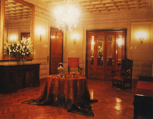 After Safvet Lüfti Tozan’s death, his possessions were dispersed at an auction still famous more than twenty years on for having provided the seed for many of today’s important art and furniture collections. “lt lasted days and the bidding went three times higher than the estimates,” recalls Raffi Portakal, the Istanbul art expert whose father oversaw the bidding. It is the furniture and carpets that most people remember. The proceeds and house went to the educational foundation, Darüşşafaka. Now [1996] the foundation has sold the house and it is back on the market at a serious price, probably nor far short of the Venetian palazzo on which it is modelled.