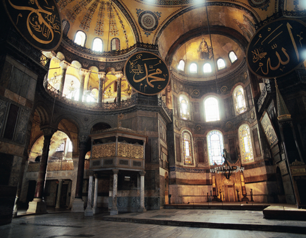 With the Ottoman conquest of Constantinople in 1453, Fatih Mehmed converted Haghia Sophia to a mosque as his first official act. The conversion involved minimal physical transformation, and even its name remained the same – Ayasofya Camii in Turkish. A minaret was constructed, a mihrab was added; Islamic relics and Ottoman battle trophies were displayed. But for the Christians after this time – both European and Orthodox – Haghia Sophia became a sort of Wailing Wall, the bearer of historical memory, of a lost heritage and a vanished civilisation.