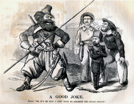 By October the Ottoman–Russian confrontation had moved from diplomacy to war, which was declared on October 23. Turkey was still alone, but on November 30 Ottoman ships in port at Sinop were destroyed by the Russians, and Britain and France, fearful of a Turkish collapse, decided to go to war, though it was not formally declared until the end of March the following year. A spate of “Help the Turk” memorabilia appeared on sale in England,