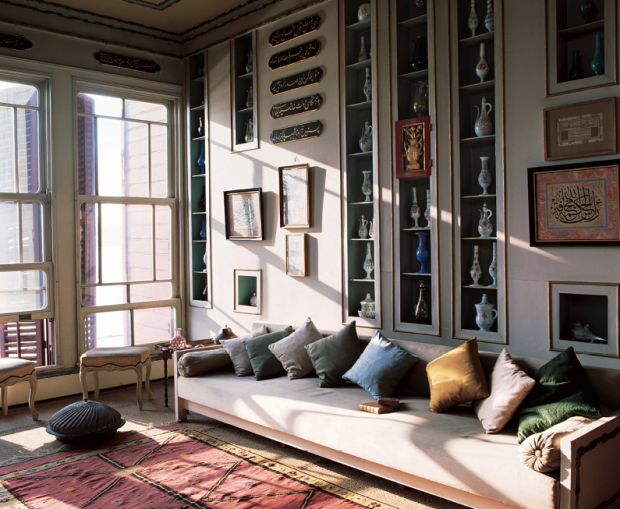 The yalı could not have belonged to anyone but the late Muharrem Nuri Birgi, so infused is it with his personality. He was one of those distinguished Turkish diplomats educated as Ottomans. After the Second World War he was ambassador to London, then to Nato. His art de vivre, impeccable taste, acerbic wit and remarkable erudition were bywords in Europe and America. From 1970 much of his talent and energy was devoted to the restoration and adornment of the yalı. Now owned by his friends Selahattin and Ayşe Beyazit, it is kept just as Nuri Bey left it.