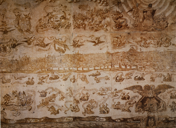 An important missing panorama of Istanbul, a rare image of the city from the troubled years of the early 1600s, has recently [1997] been unveiled amid the frescoed splendours of the Vatican and is on view as you leave the Sistine Chapel. The panorama is on loan from the Vatican Library.