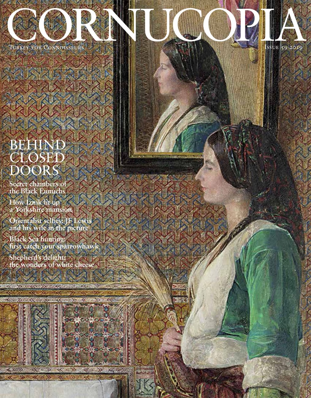 From the oldest temple on earth to the madly modern hats of Merve Bayındır, Cornucopia 59 time-travels in style. We take you from late-Roman Rough Cilicia to the Eastern Black Sea, where falconry flourishes; discover the secrets of the Black Eunuchs’ quarters in Topkapı Palace, and revel in the glorious swansong of Iznik art in deepest Yorkshire.